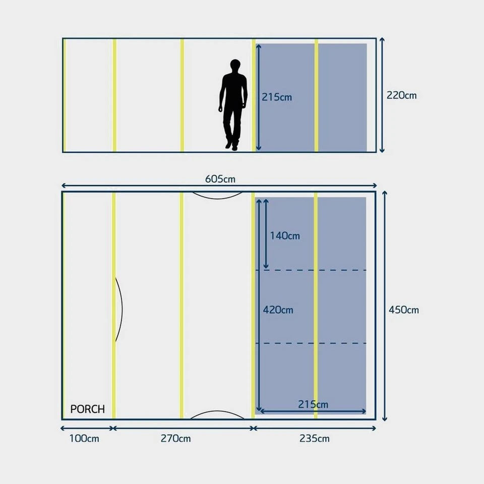 - Dimensions:Â 220cm (H) x 450cm (W) x 605cm (L)