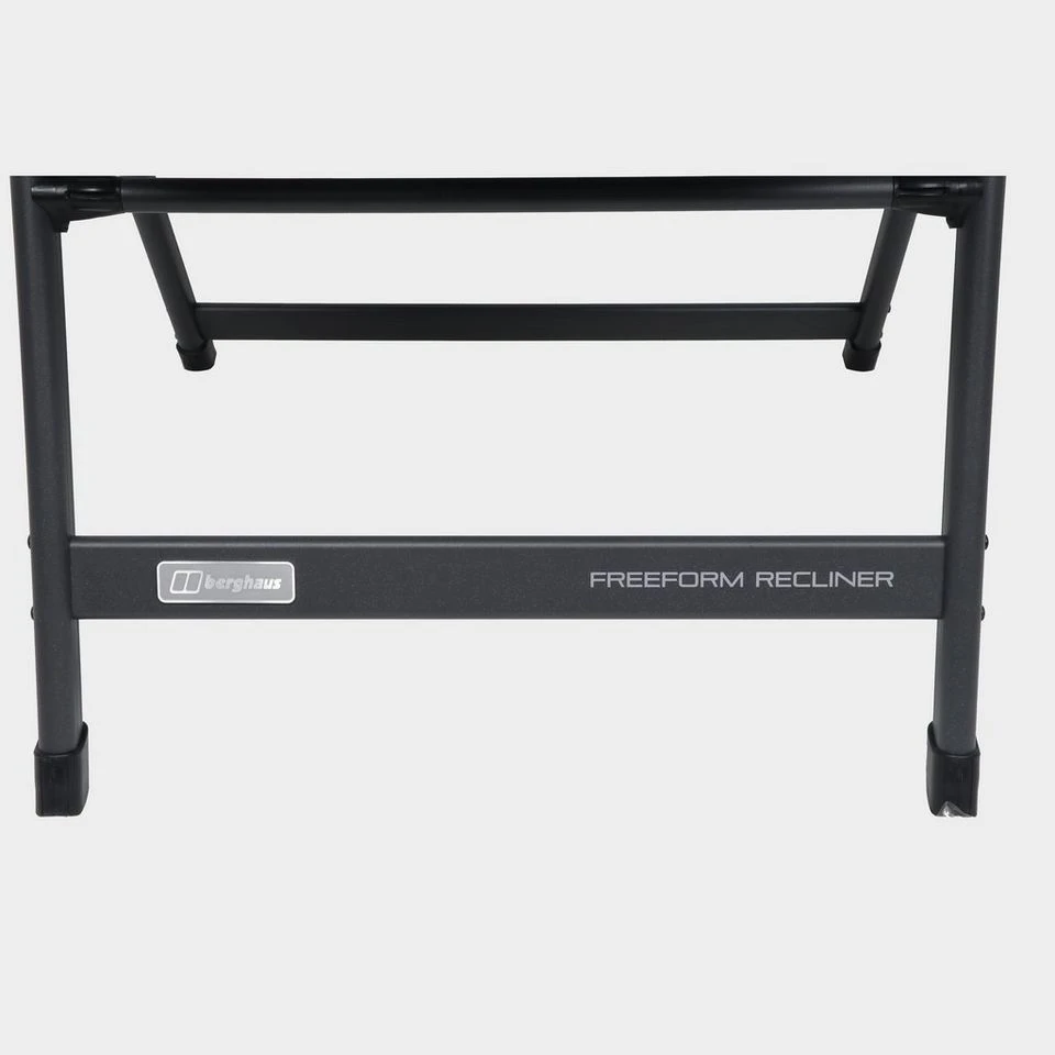 Recline around the fire with the Berghaus Freeform Recliner. Practical and comfortable, with seven reclining positions combined with wide armrests and a segmented padded backrest provide maximum comfort and support. With a frame constructed from tough yet light aluminium, the Freeform is quick and easy to transport and move around your campsite. Upholstered with an easy-to-clean stone-grey polyester fabric and completed with the Berghaus logo on the headrest. Matching carry bag included.